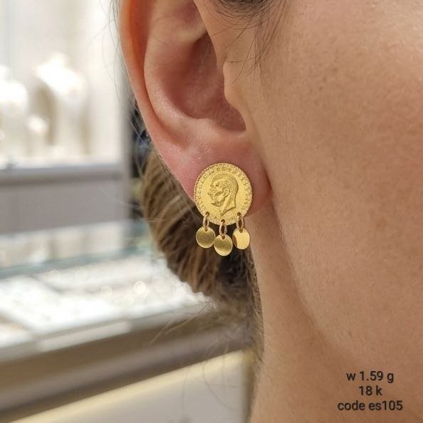 حلق ذهب عيار 18 بتصميم عصري وأنيق، يضفي لمسة من الفخامة والجمال على إطلالتكِ. مثالي لجميع المناسبات.