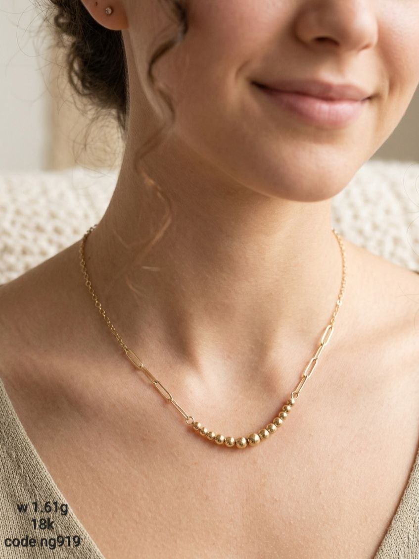سلسلة ذهب عيار 18 دورين بتصميم كرات ناعمة