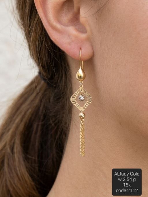 حلق ذهب عيار 18 بتصميم أنيق ورقيق، يضفي لمسة ساحرة على إطلالتك ويجعلكِ محط الأنظار.